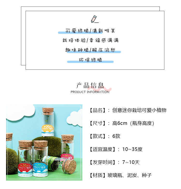 商品名称:创意栽培可爱小植物 桌面趣味小摆件 迷你水培绿植礼品