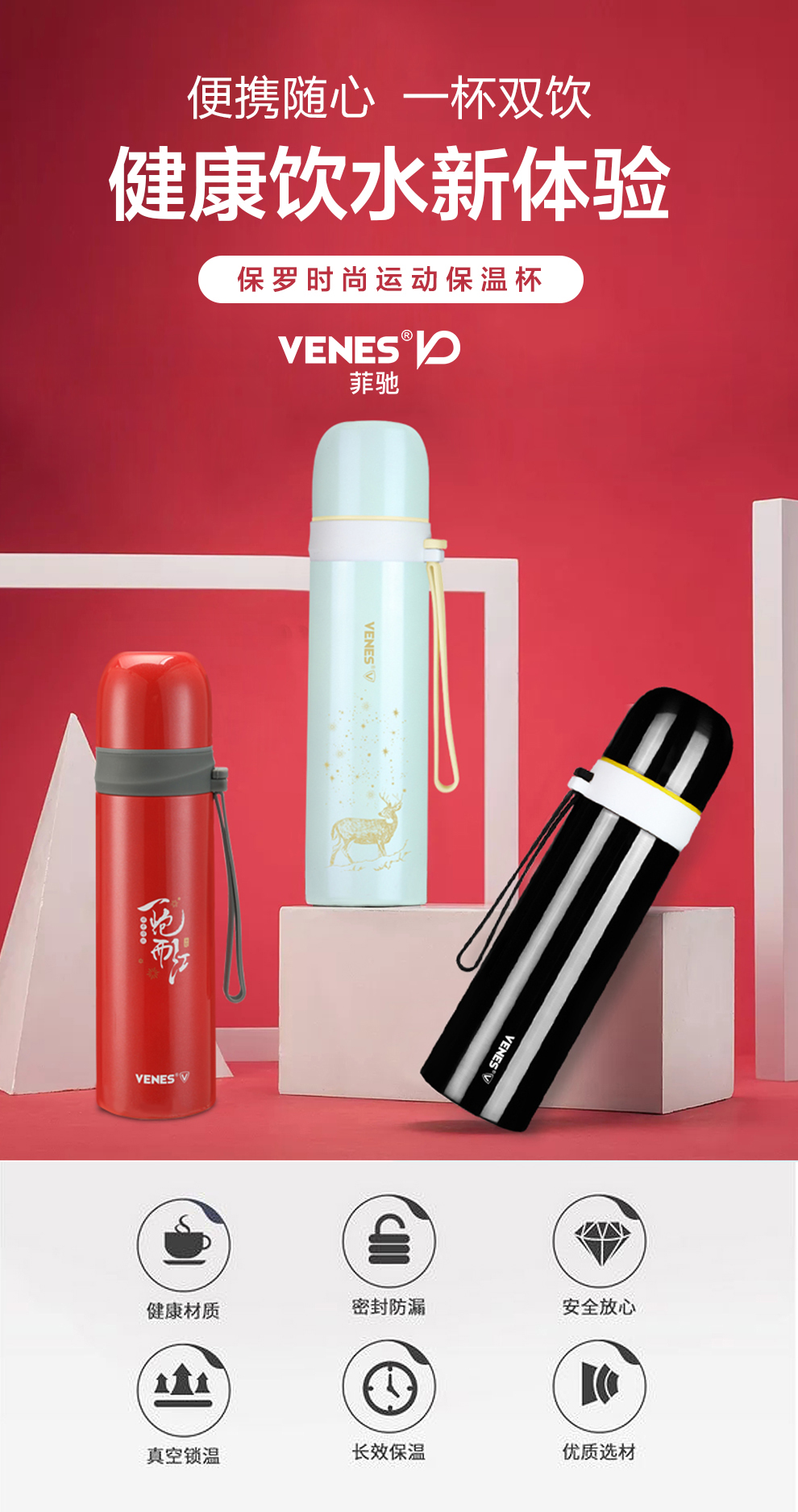 菲驰(VENES)运动水杯304不锈钢500ml保罗运动保温杯 搞活动礼品