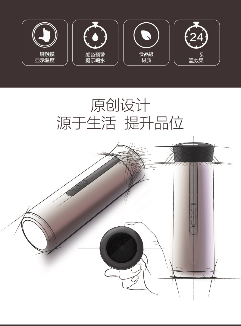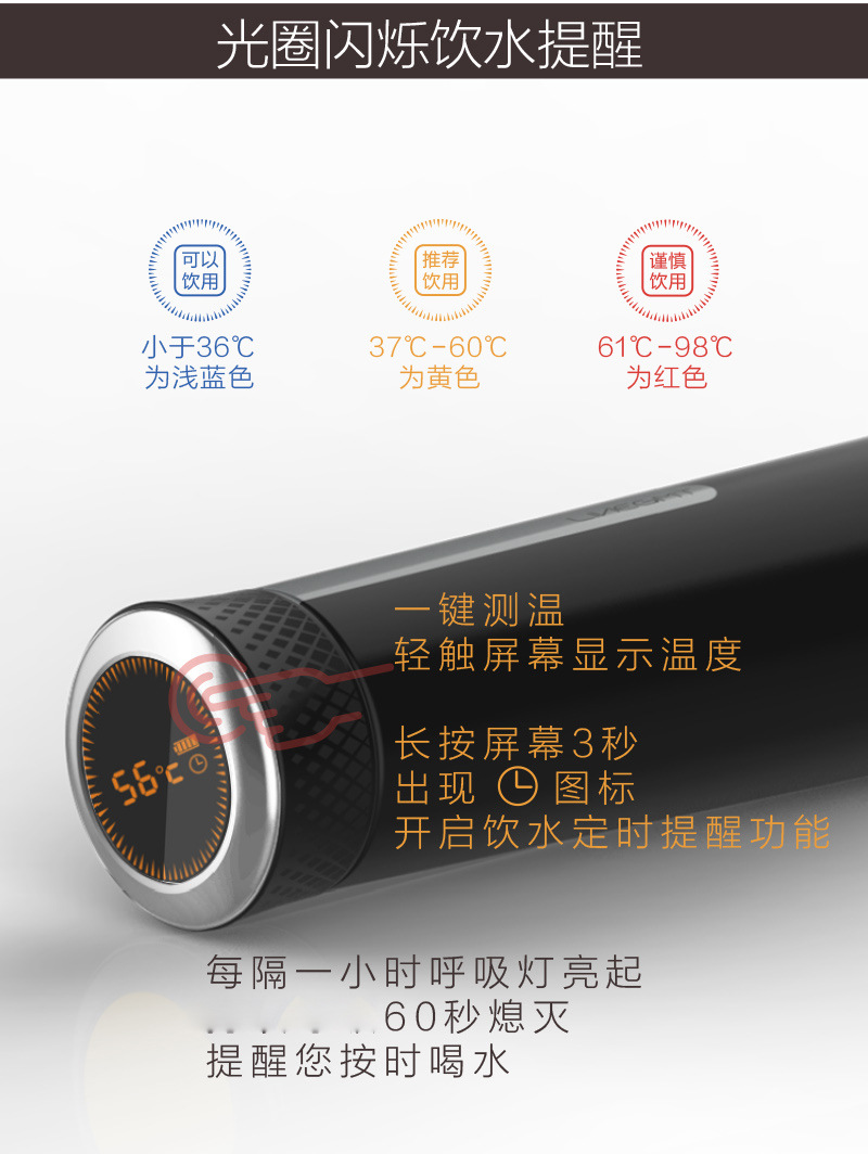 商品名称:无线充款智能保温杯温度显示喝水提醒带茶隔保温杯480ML 公司年会活动礼品