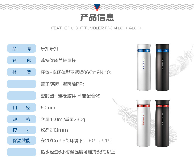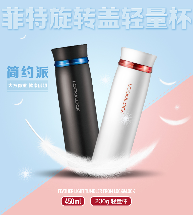 商品名称:乐扣乐扣(Lock&Lock)菲特超轻量黑白保温杯 旋转盖不锈钢保温杯保冷杯450ML 商务礼品 4S店礼品