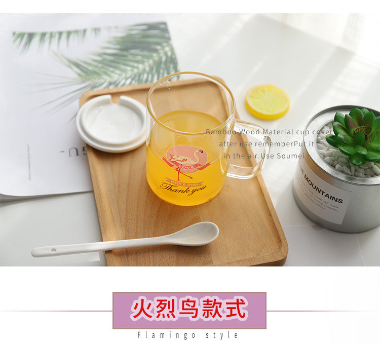 Thank You北欧风带盖火烈鸟玻璃杯 创意高鹏玻璃牛奶杯 商务礼品一般都送什么