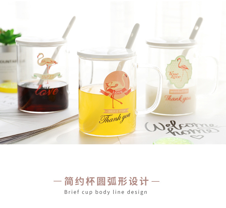 商品名称:Thank You北欧风带盖火烈鸟玻璃杯 创意高鹏玻璃牛奶杯 商务礼品一般都送什么