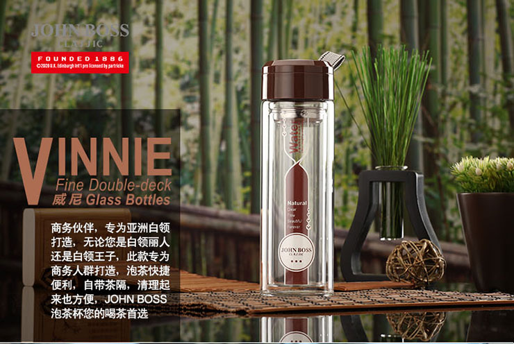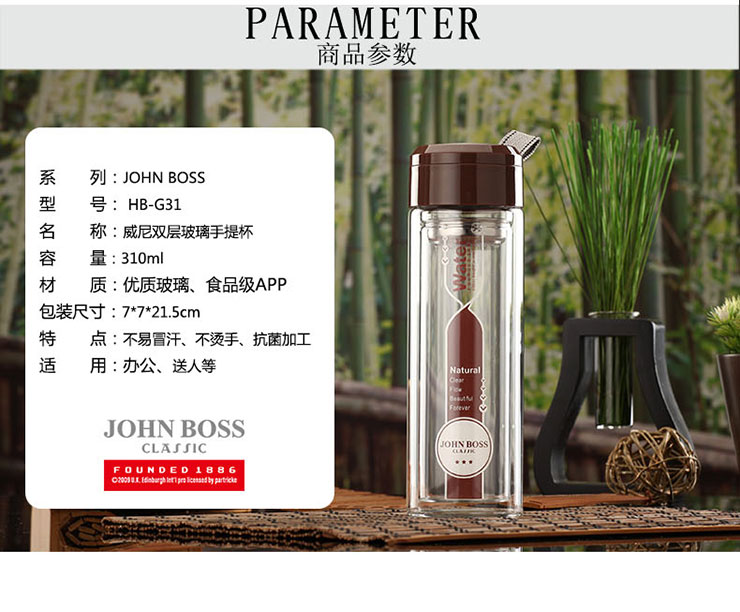 商品名称:JOHN BOSS(英国) 威尼双层玻璃手提杯 时尚防烫手玻璃杯 随身杯 310ml