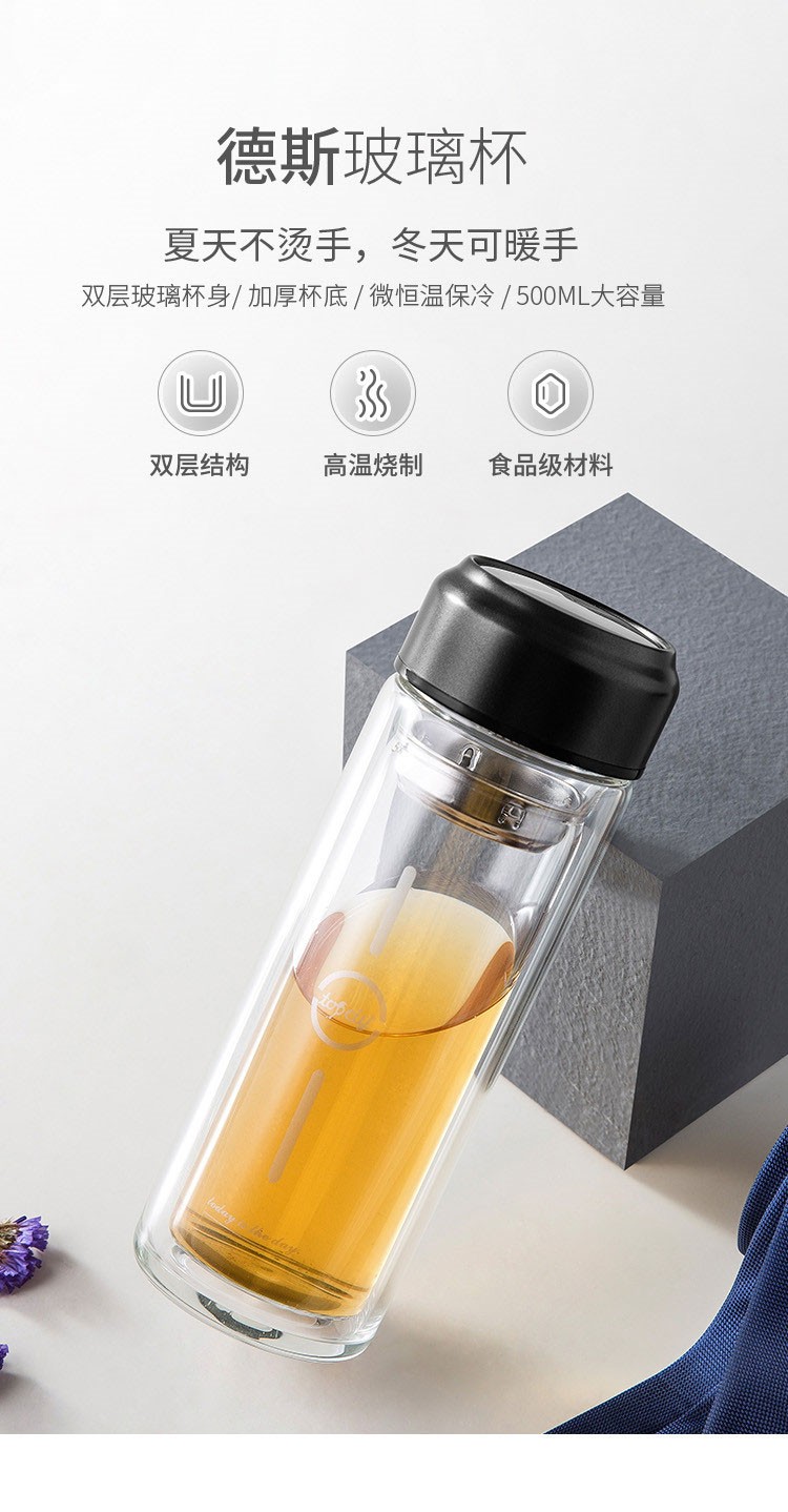希诺(HEENOOR)双层玻璃杯 带盖商务茶杯水杯315ML 200元左右的实用礼品