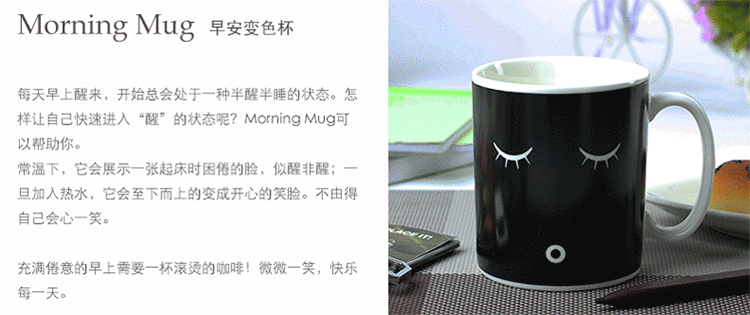 商品名称:morning mug眯眼笑脸趣味变色杯 350ml陶瓷礼品杯 商务礼品有哪些