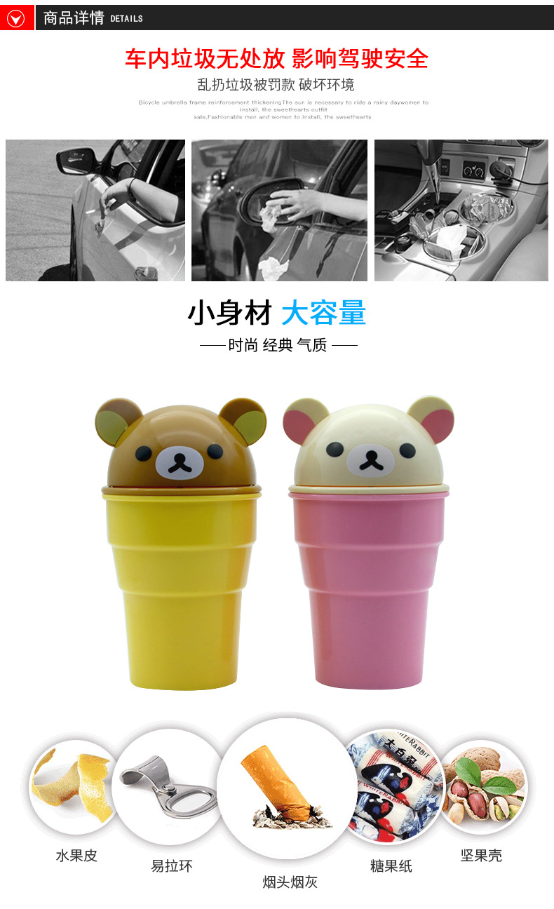 商品名称:车载轻松熊杂物杯 车用垃圾桶 置物盒 彩盒装 LW-1796AB