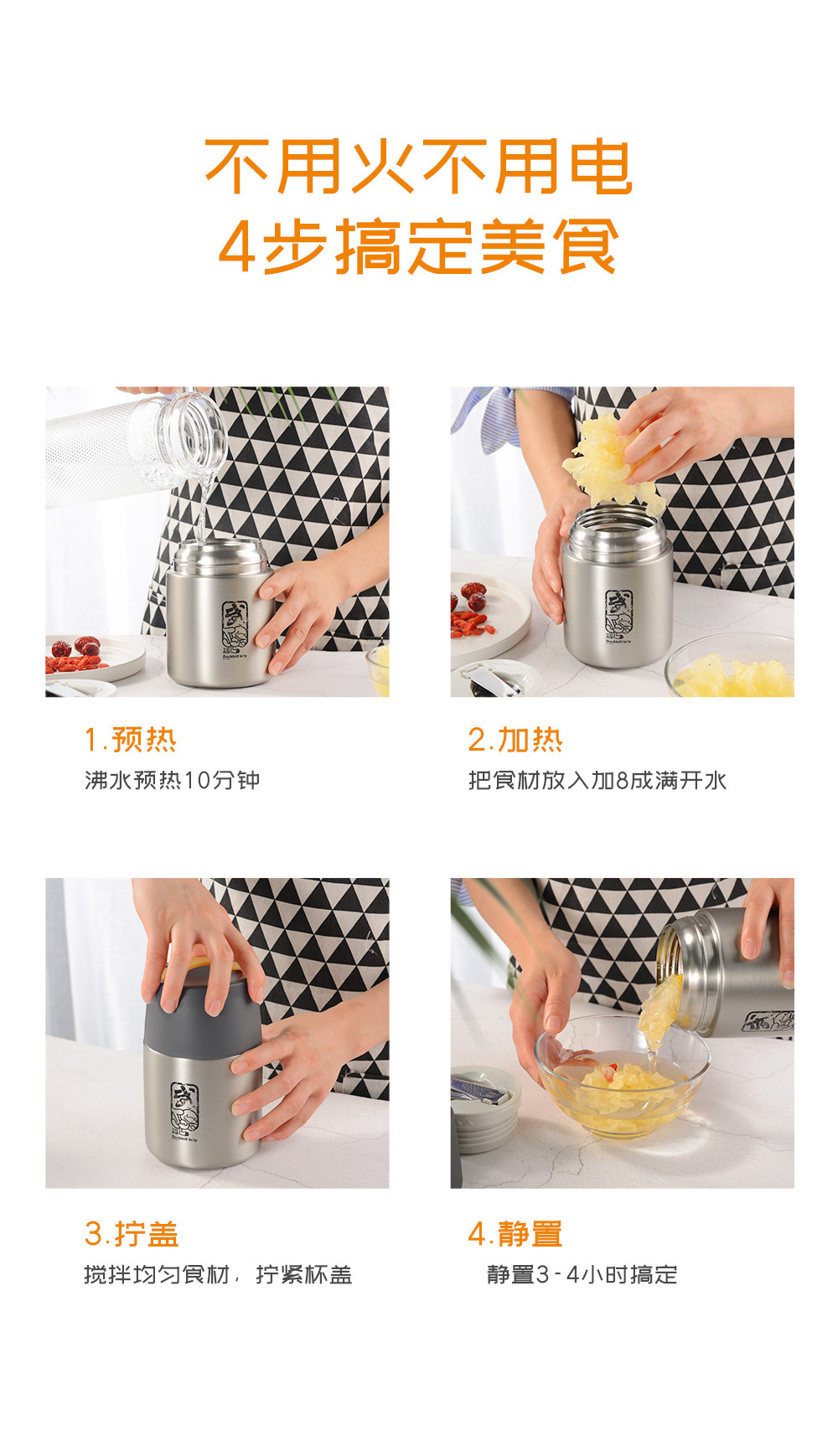 商品名称:鸭嘴兽乐享焖烧壶不锈钢内胆折叠勺便携焖烧杯焖烧罐 客户礼品方案