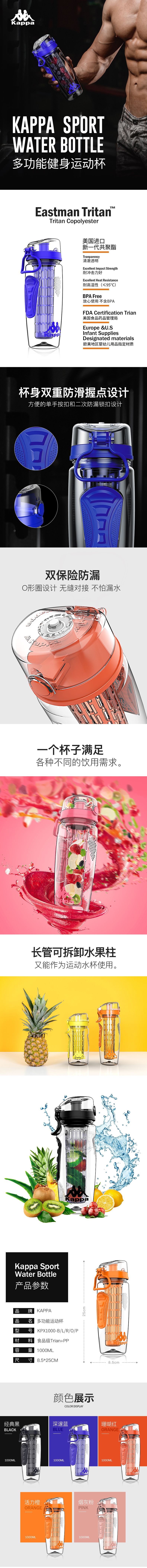 商品名称:Kappa 意大利背靠背 多功能炫彩健身运动杯1000ml 送客户什么礼品最实用