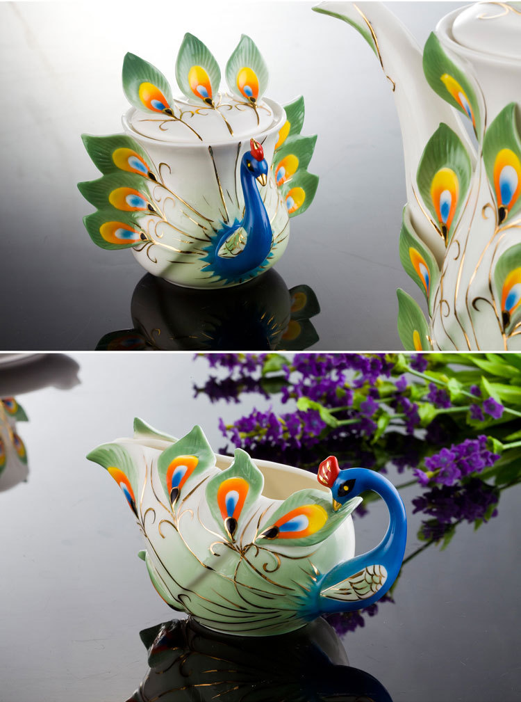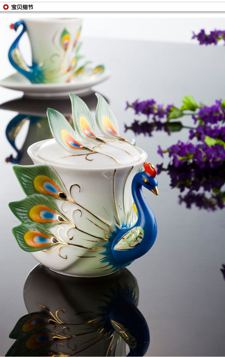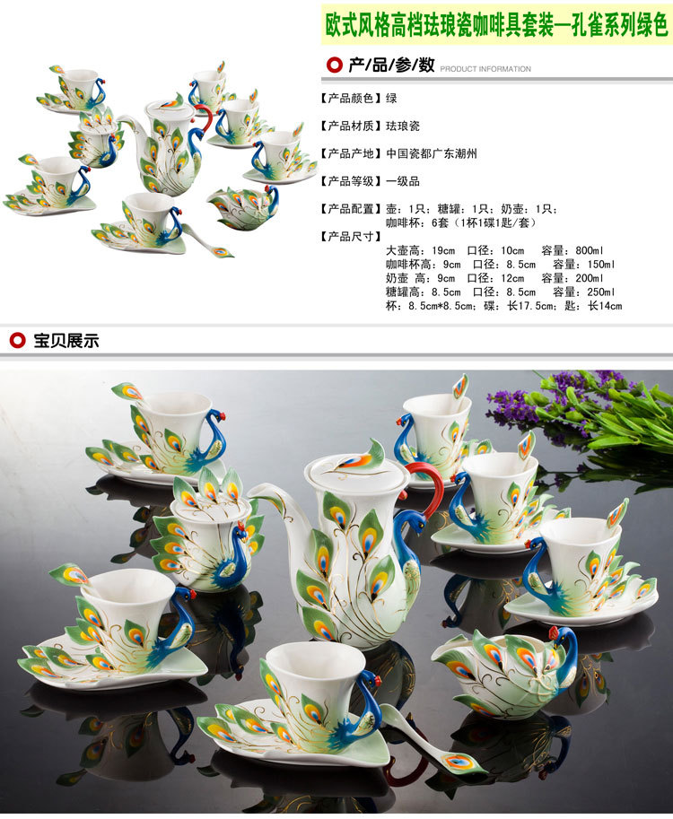 商品名称:珐琅瓷孔雀杯具套装 西式创意陶瓷咖啡杯 婚庆会议送礼