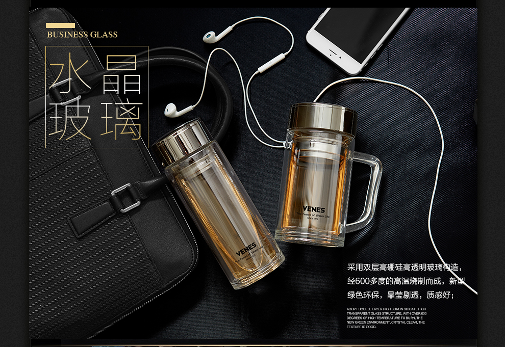 商品名称:菲驰(VENES)风范玻璃杯套装大方典雅办公杯玻璃杯商务两件套 如何给客户送礼品
