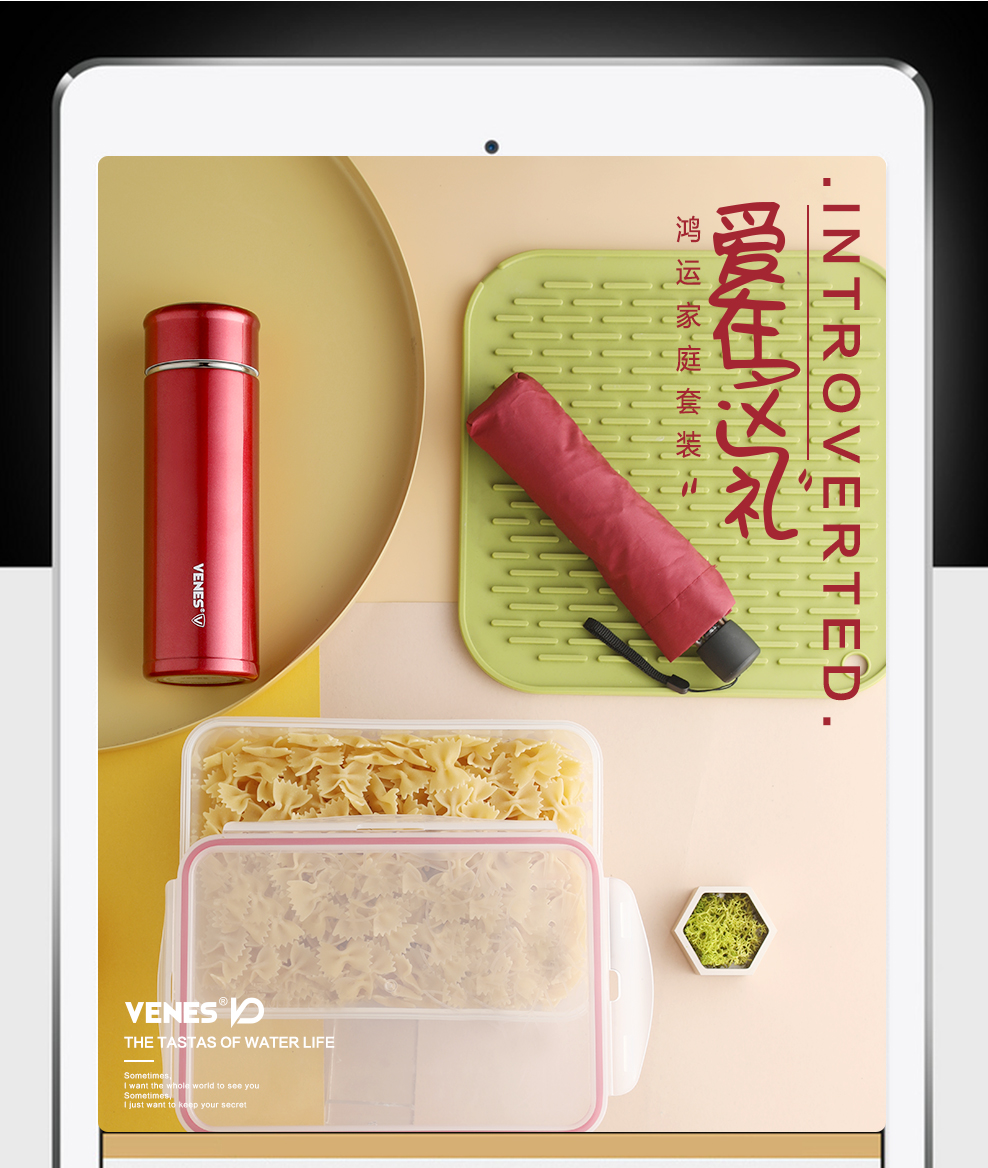 商品名称:菲驰(VENES)保温杯+铅笔伞+保鲜盒鸿运家庭套装三件套 银行礼品订制