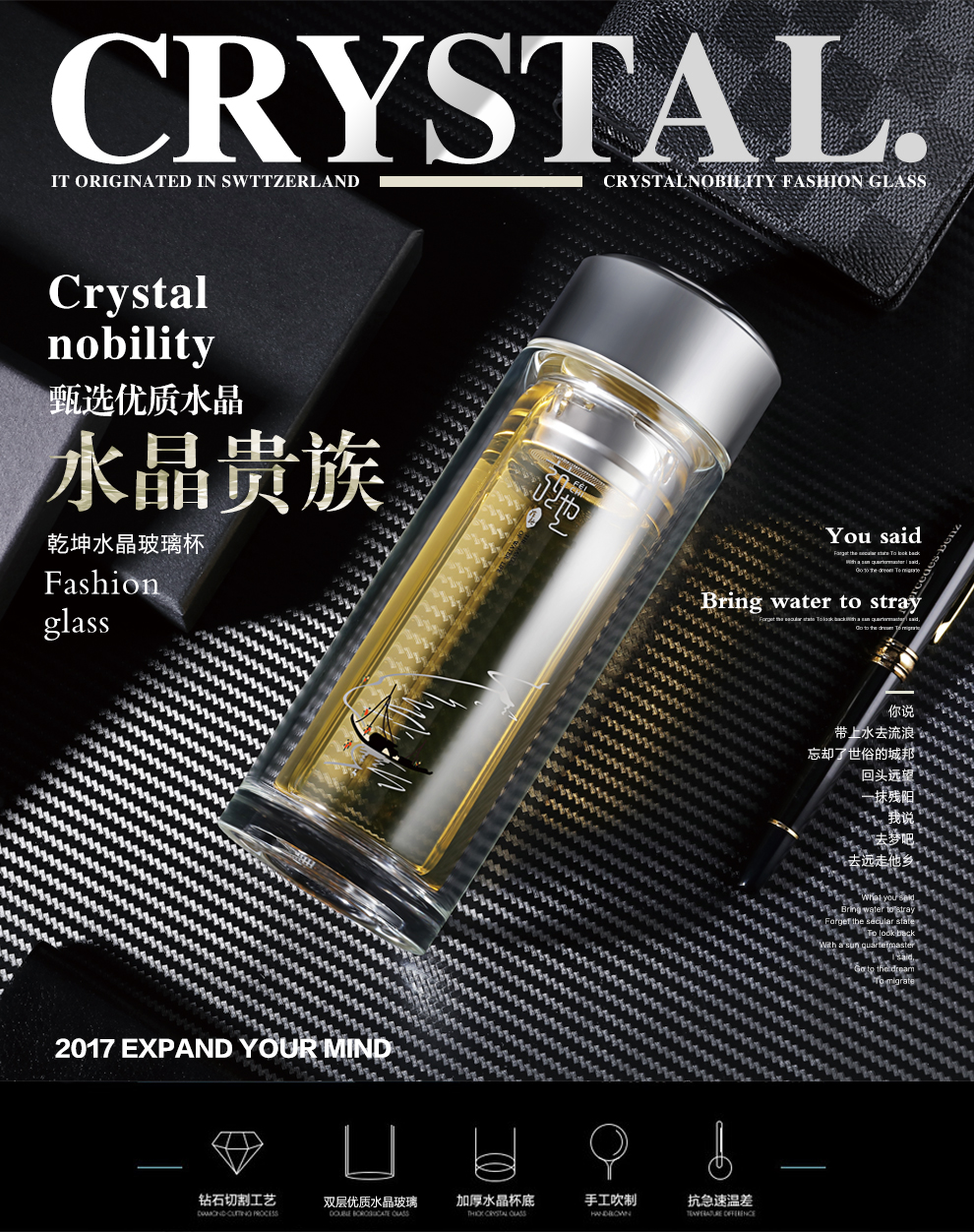 菲驰(VENES)乾坤水晶杯带茶隔双层玻璃水杯2mm加厚水晶杯底 商务礼品定制