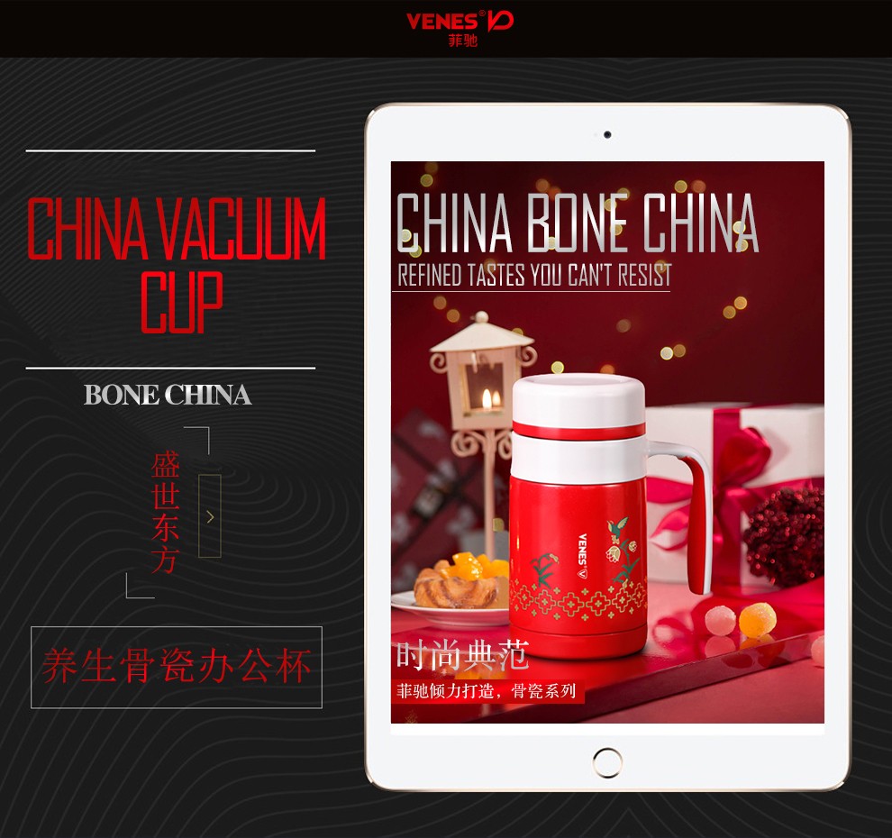 菲驰(VENES)中国红盛世东方养生骨瓷办公杯直杯两件套 公司送什么礼品
