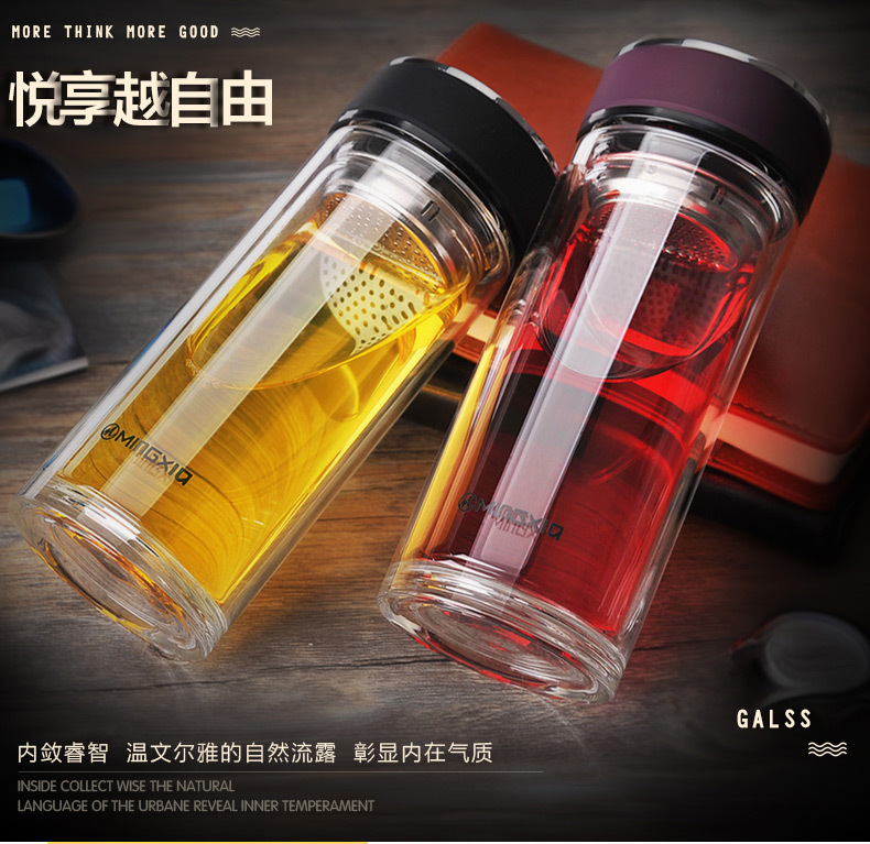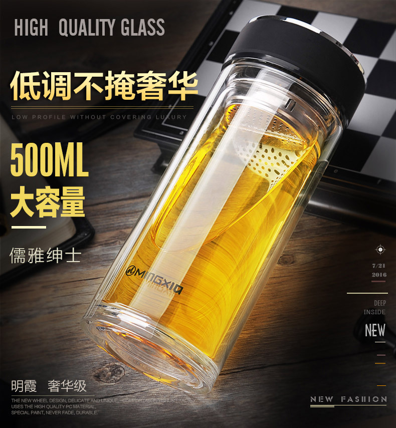 商品名称:MINGXIA高档双层防烫500ML带茶滤泡茶杯定制 广交会小礼品