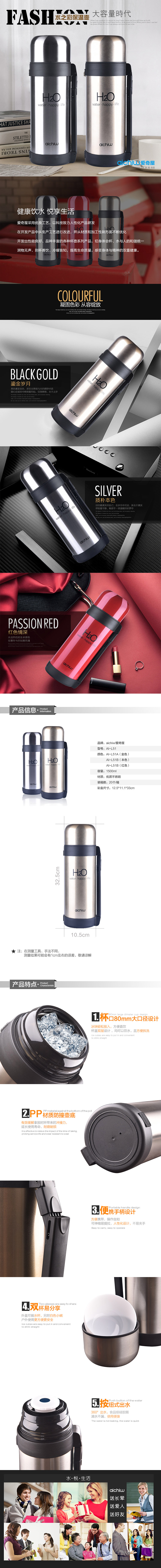 商品名称:水之彩简约旅行保温壶 两用杯盖 伸缩手柄大容量保温水壶1500ML 公司拓展活动奖品