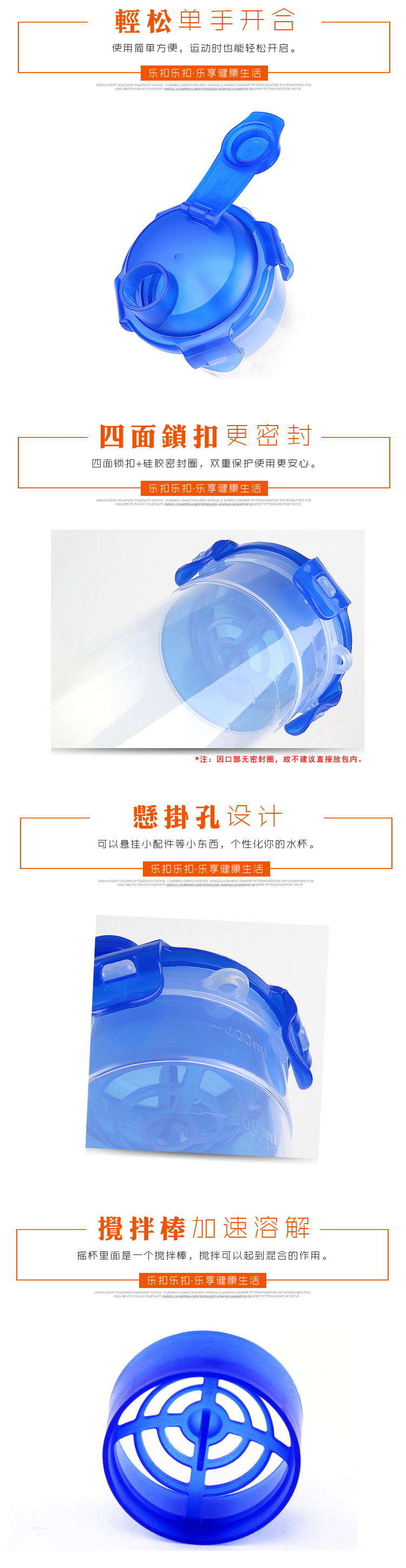 商品名称:乐扣乐扣(Lock&Lock)塑料运动水杯 带过滤茶网水壶 随手杯470ML HPL931N 市场小礼品