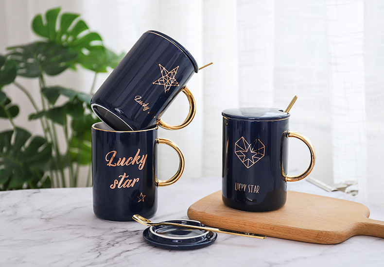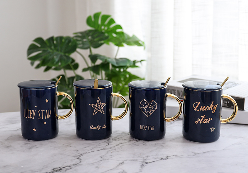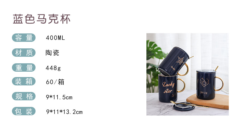 商品名称:LUCKY STAR 带盖带勺描金星星咖啡办公饮水杯 房地产活动礼品