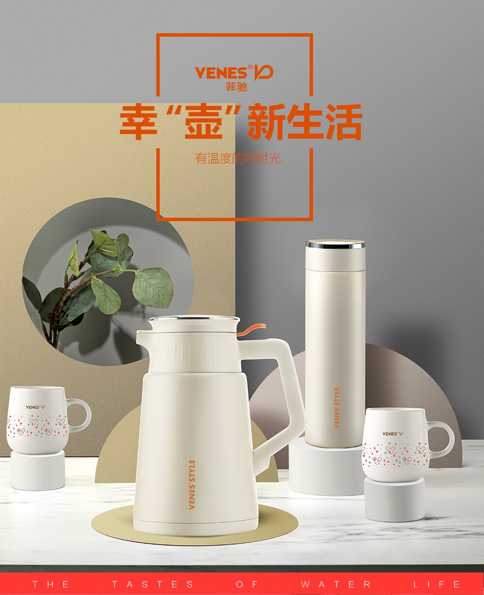 商品名称:菲驰(VENES)家用保温壶套装1600ML保温壶+500ML保温别+400ML陶瓷杯*2 地产交房礼品