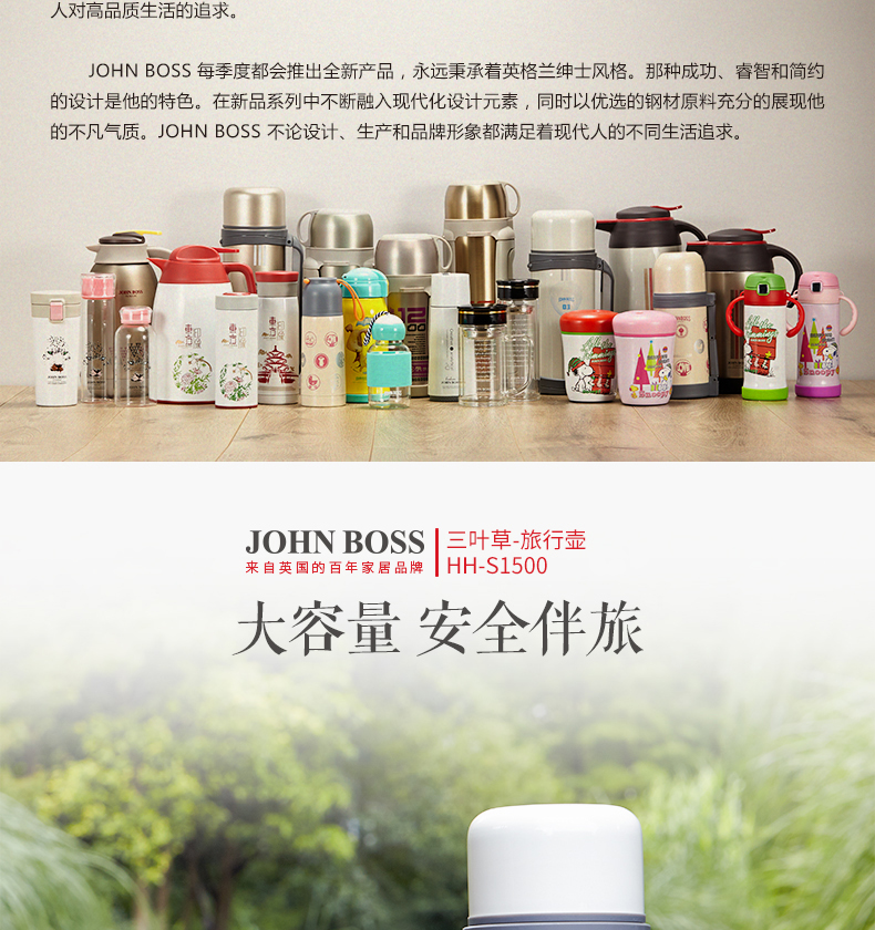 商品名称:JOHN BOSS(英国) 三叶草旅行壶 大容量保温杯 1500ML 公司组织活动奖品