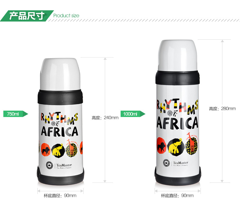 律动非洲户外旅行壶 双层不锈钢大容量保温水壶750ML/1000ML