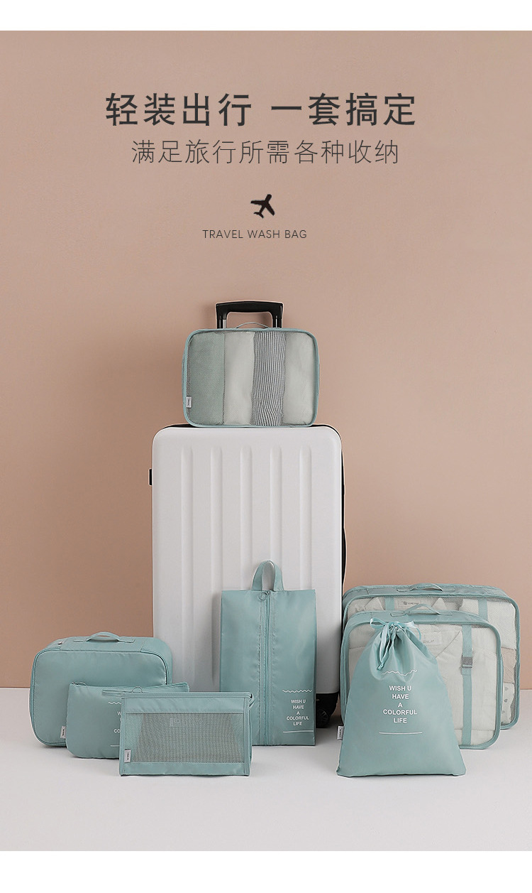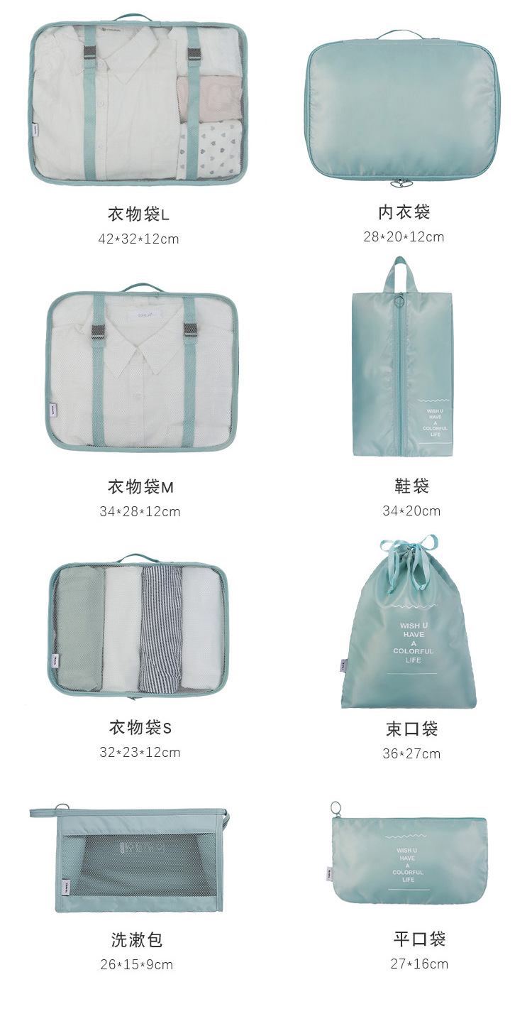 商品名称:斜纹牛津布旅行收纳八件套 衣物分类收纳包套装 差旅礼品定制
