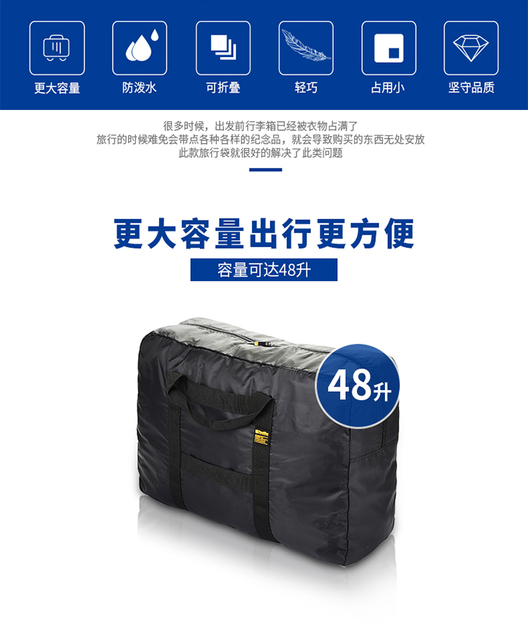 商品名称:英国蓝旅(Travel Blue)大容量折叠旅行包 手提行李衣物整理袋防水超轻便携收纳包 超轻大容量折叠包48L