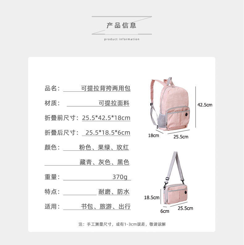 商品名称:背挎两用背包防水折叠多功能双肩包学生书包 创意小礼品
