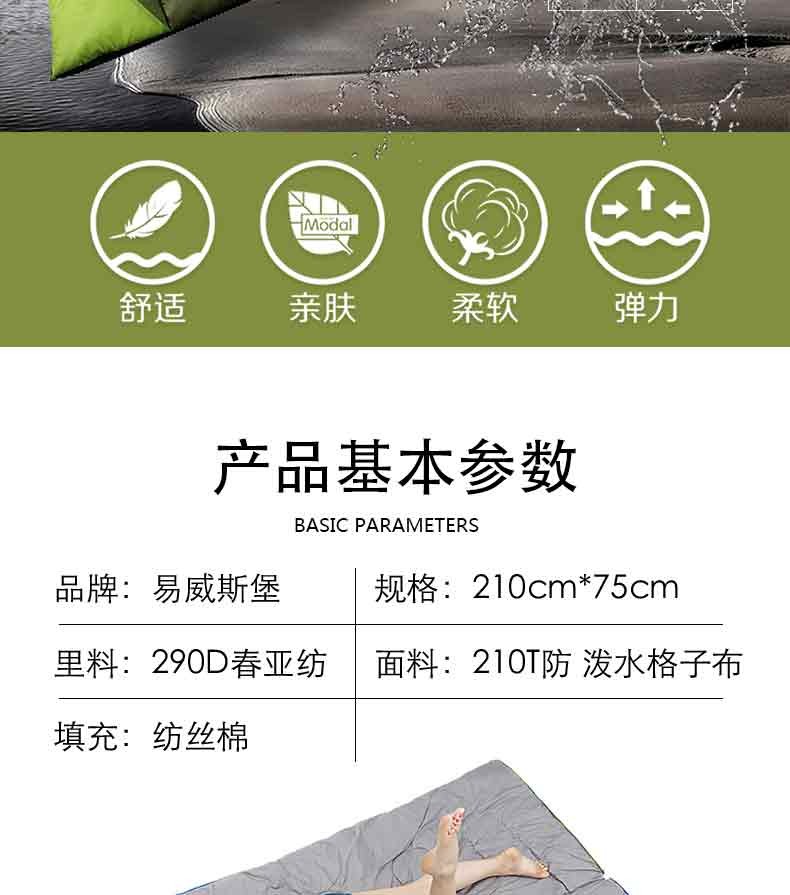 商品名称:易威斯堡(EasySport)午休露营睡袋 豪华四季睡袋 活动奖品