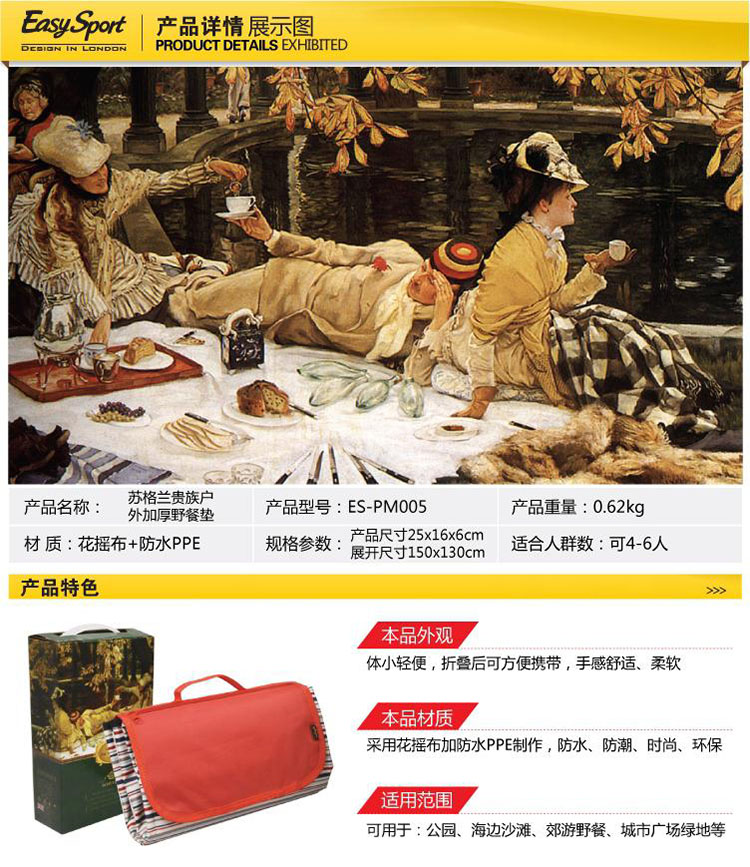 商品名称:易威斯堡(EasySport)苏格兰贵族野餐垫 郊游防潮野餐垫