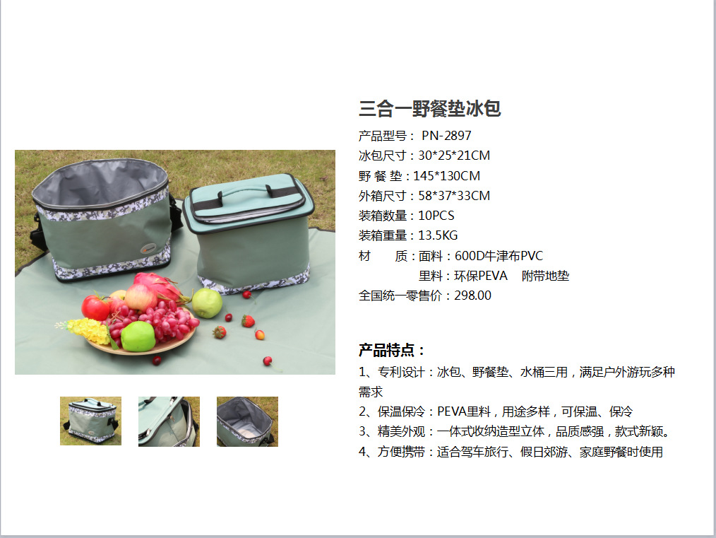 商品名称:攀能(Panon)三合一野餐垫冰包 冰包、野餐垫、水桶三用 PN-2897