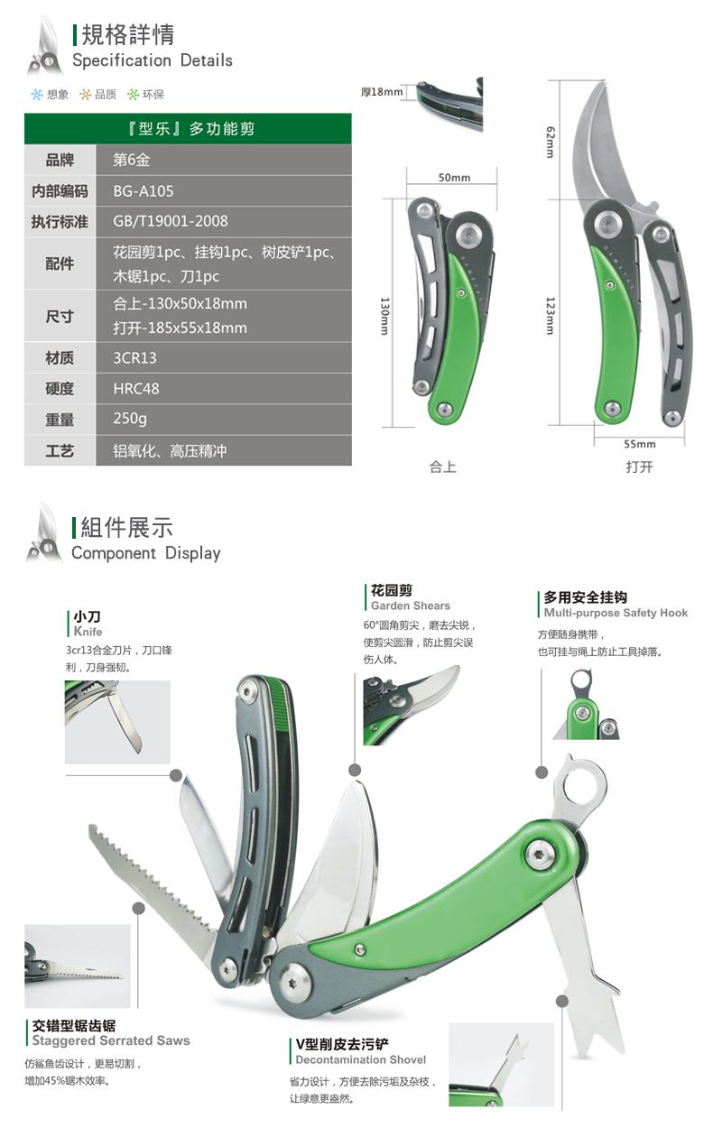 商品名称:【型乐】多功能剪(集剪、割、锯、削、挂5种功能于一体)