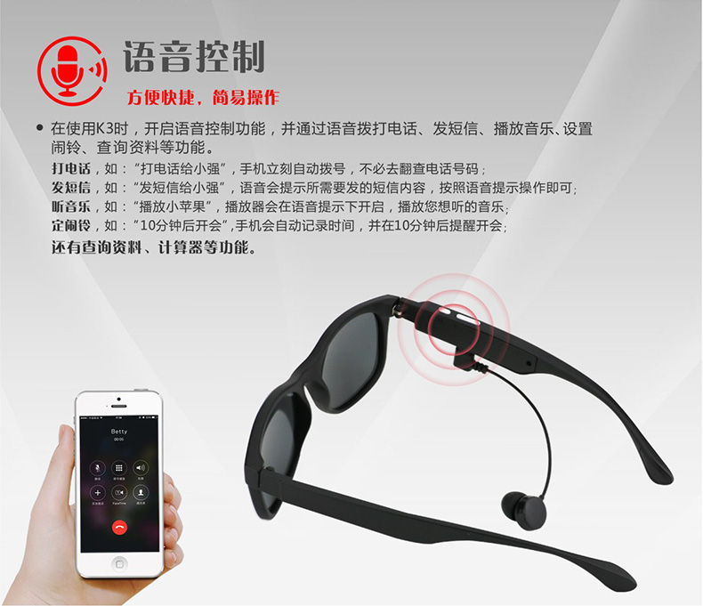 商品名称:广百思k3p蓝牙太阳眼镜 时尚户外旅行礼品