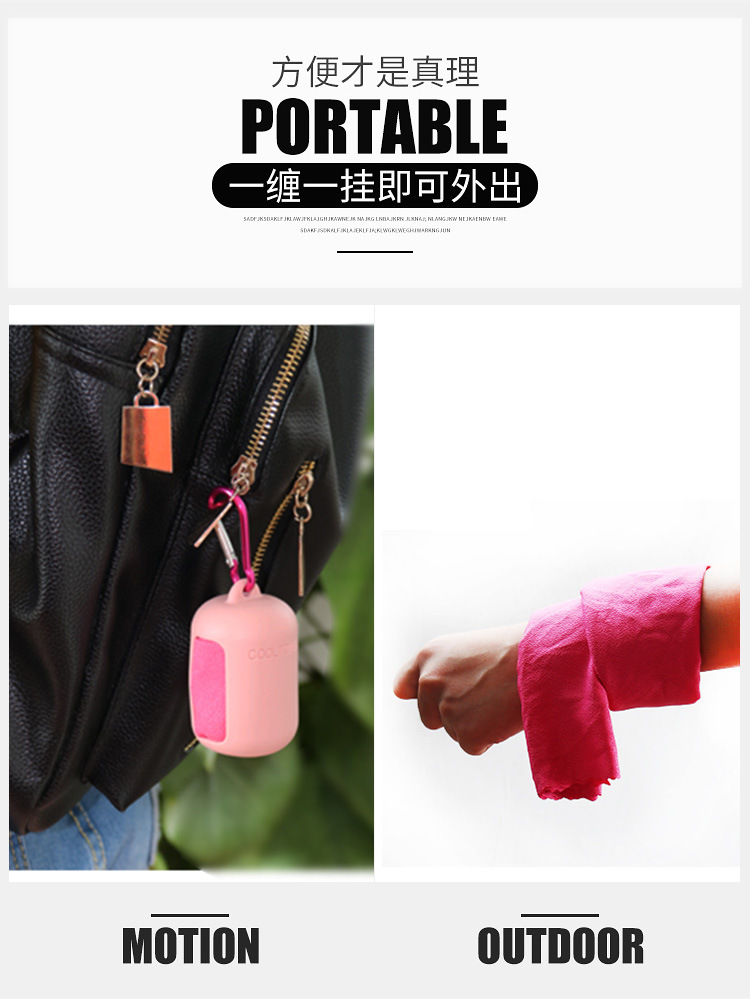 商品名称:冷感纤维速干毛巾 户外运动毛巾 可挂包包便携毛巾 展会礼品推荐