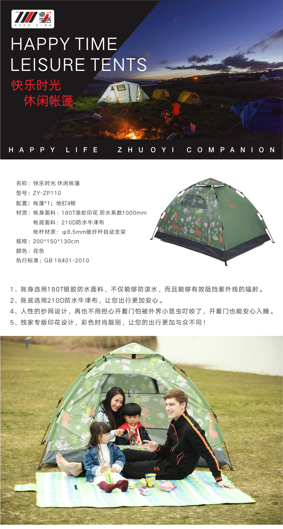 商品名称:ZUEI 创意户外便携收纳印花帐篷 防水防蚊虫 户外礼品定制