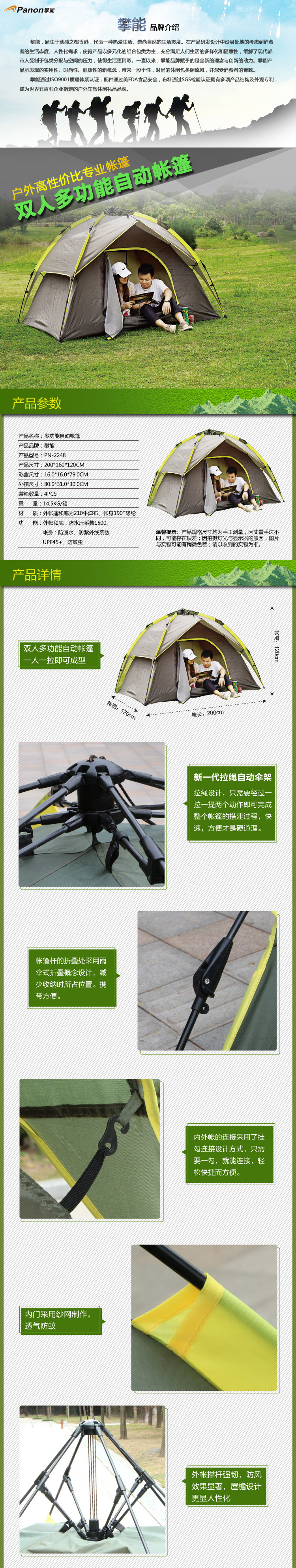 商品名称:攀能(Panon)多功能自动帐篷 户外露营野营帐篷 PN-2248