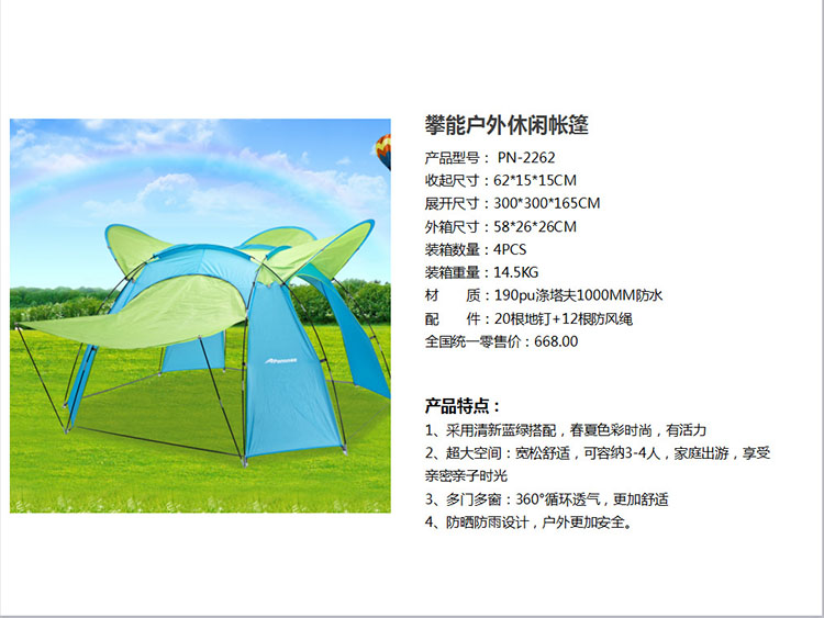 商品名称:攀能(Panon)清新蓝绿户外休闲帐篷 PN-2262