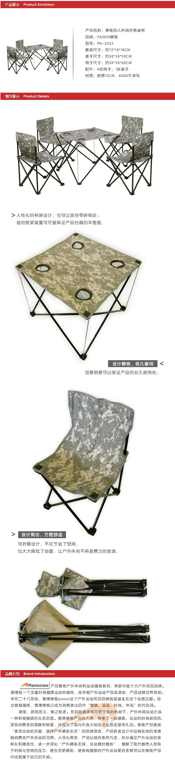 商品名称:攀能(Panon)四人休闲折叠桌椅套装 PN-2433