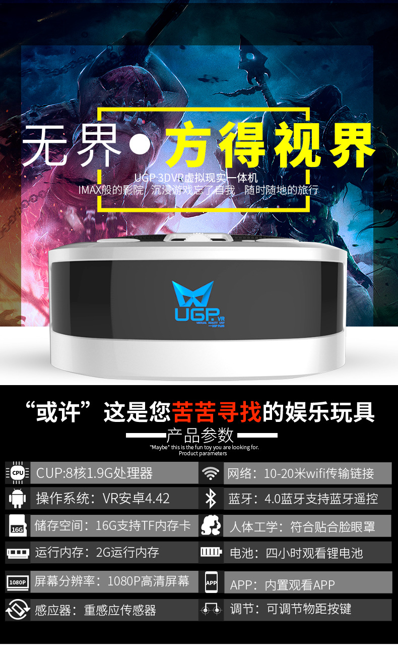 商品名称:ugp高清vr一体机 虚拟现实3d眼镜4k头戴式 客户小礼品 新年奖品