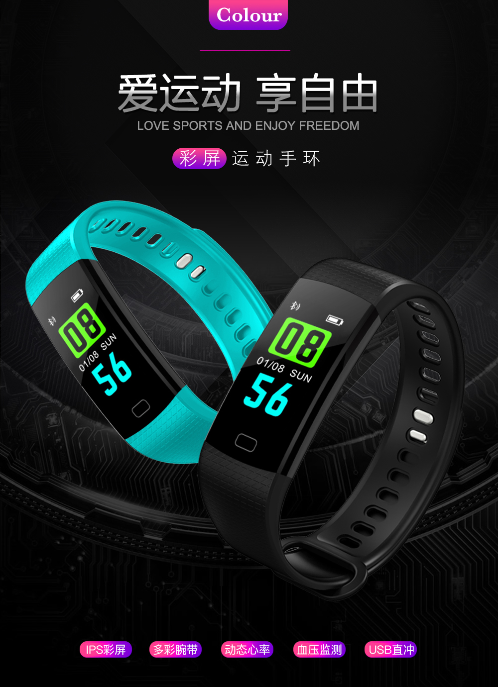 彩屏血压心率手环 动态心率/卡路里/计步/感光屏幕运动手环 商务智能手环