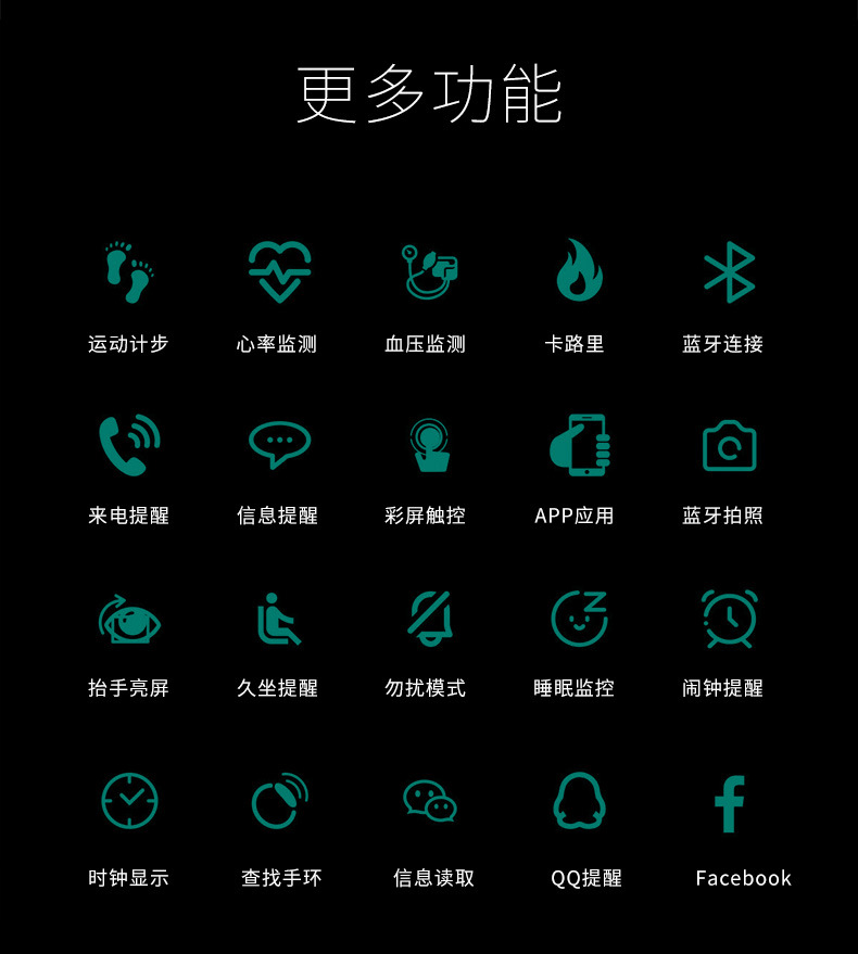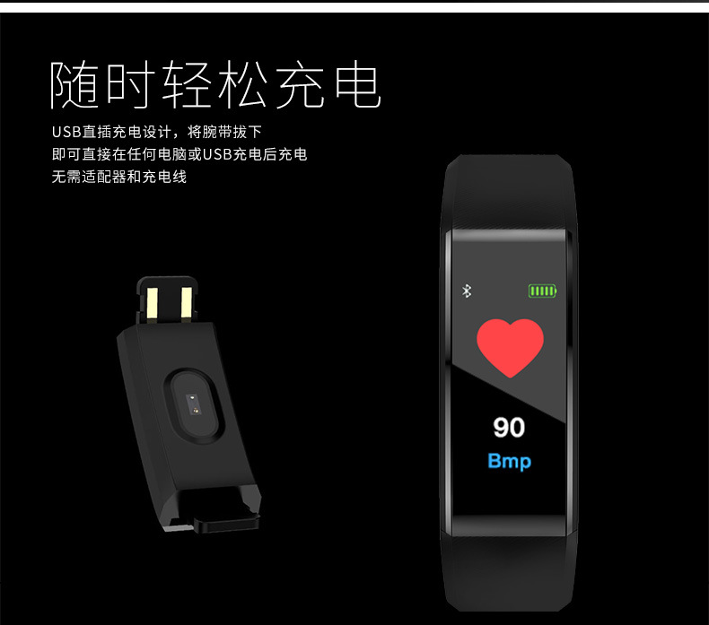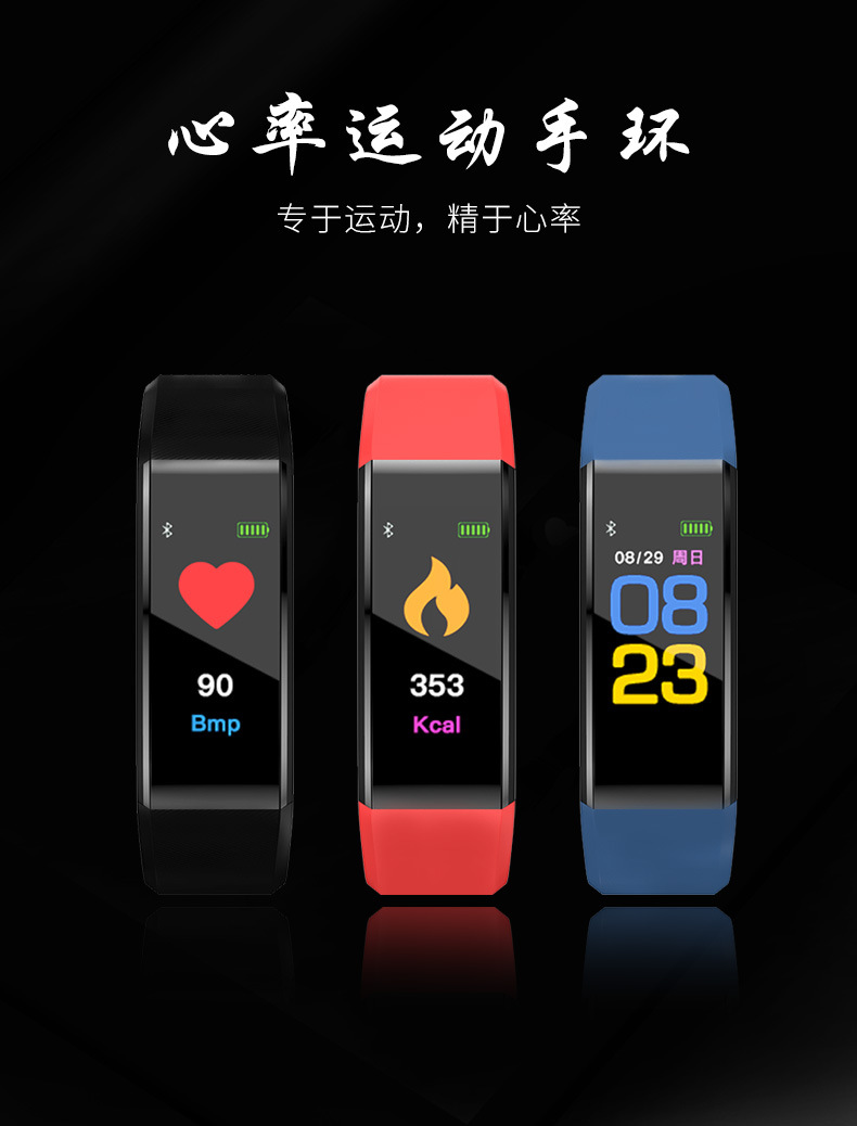 商品名称:彩屏心率智能手环 心率监测 多功能运动计步器 促销活动礼品
