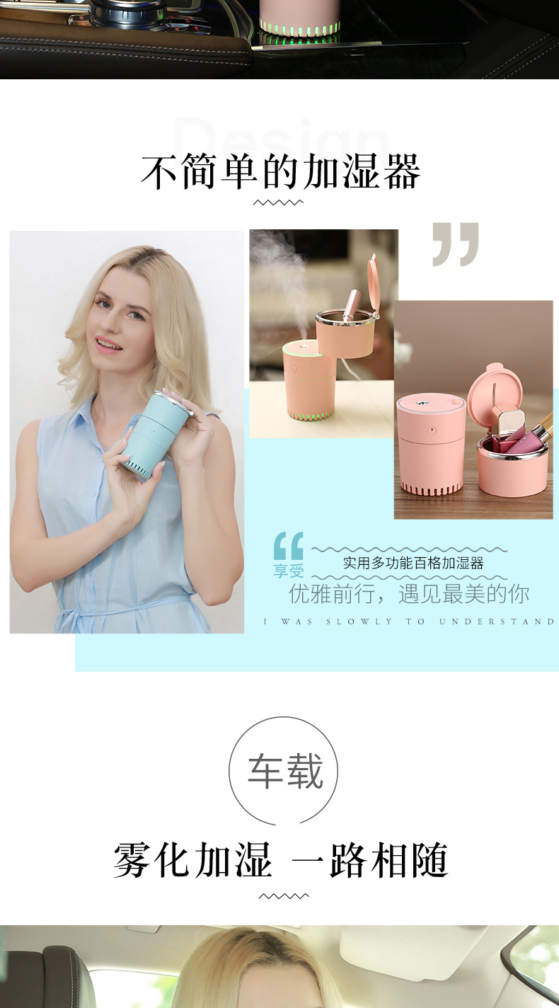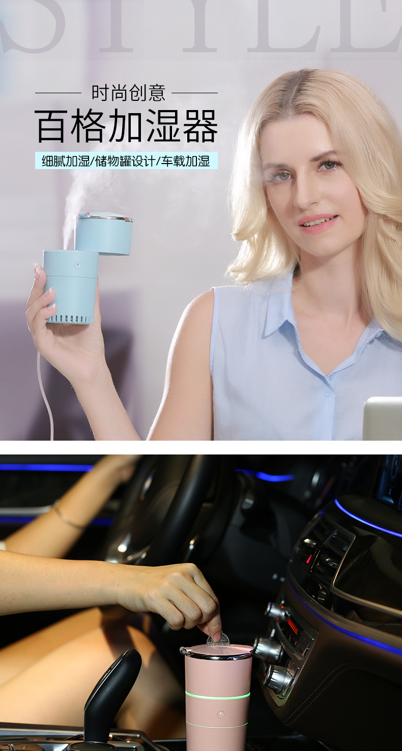 夜光百格雾化加湿器 车载储物二合一创意加湿器 创意趣味礼品