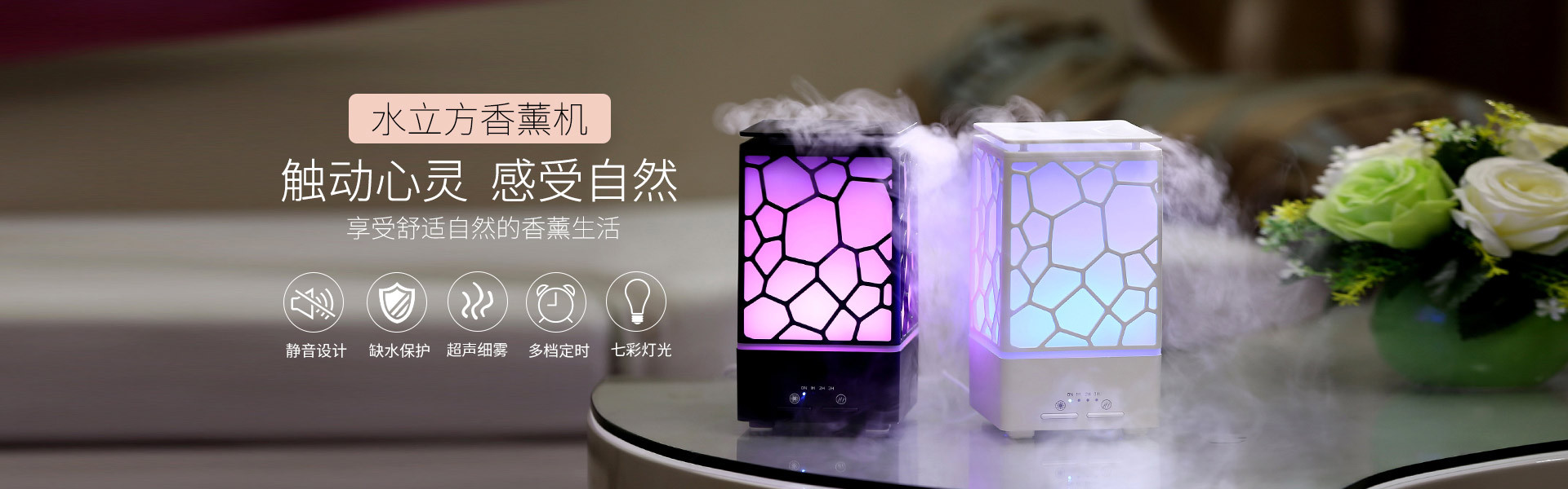 商品名称:雅致水立方香薰机 超声波香薰加湿器 七彩氛围灯家用加湿器 小夜灯加湿器 入职周年礼品