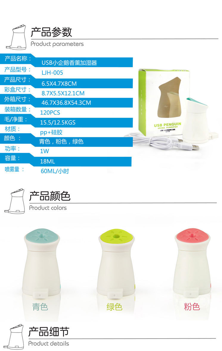 商品名称:企鹅迷你加湿器 桌面加湿水润滋养 创意便携 活动小礼品 年会奖励品