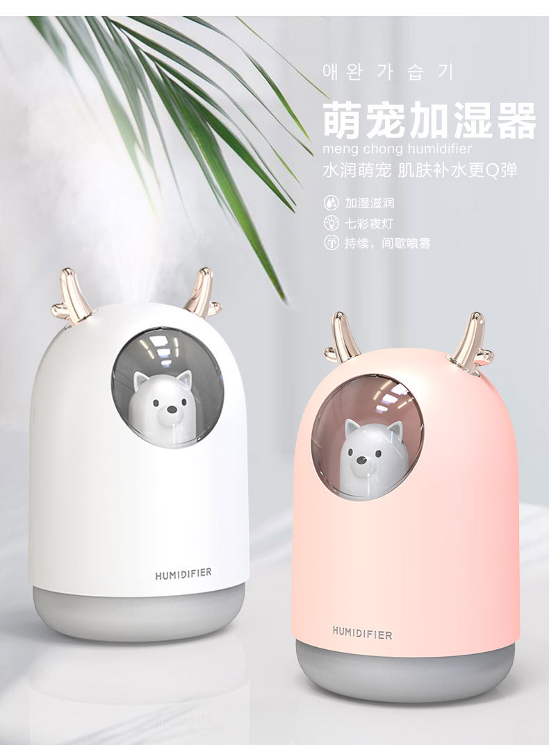 商品名称:创意水润萌宠加湿器 家用卧室空气雾化器大雾量七彩夜光迷你加湿器 时尚简约创意类礼品