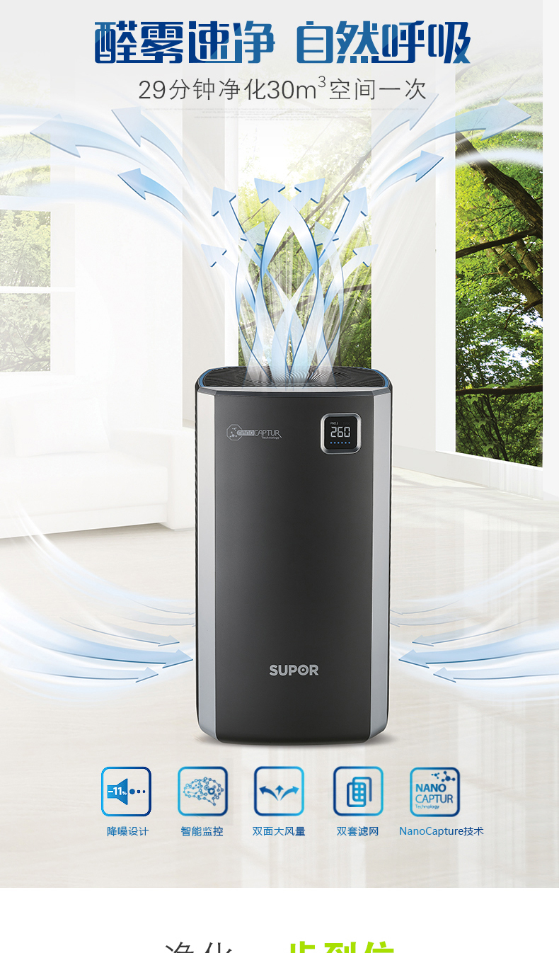苏泊尔(SUPOR) 家用智能三重过滤空气净化器 除菌除尘除霾 年会奖品定制