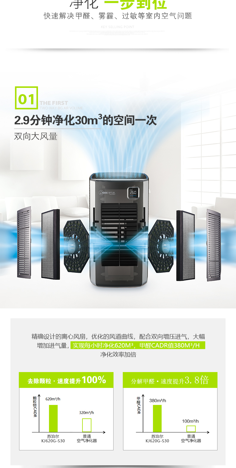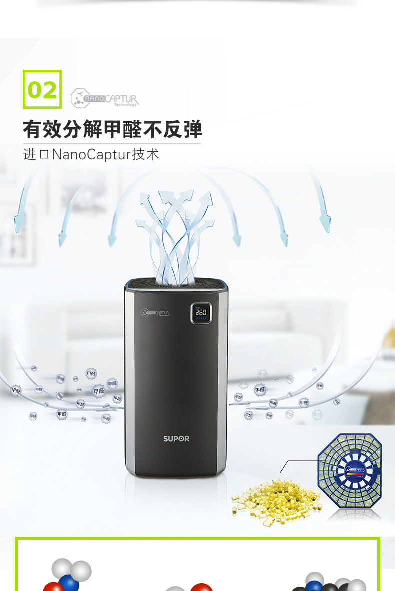 商品名称:苏泊尔(SUPOR) 家用智能三重过滤空气净化器 除菌除尘除霾 年会奖品定制