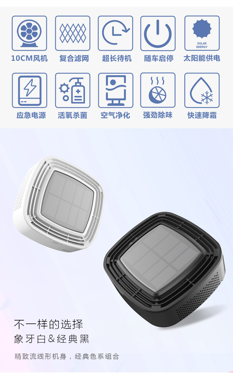 商品名称:太阳能车载空气净化器 车载家居两用净化器 环保礼品定制 活动客户礼品