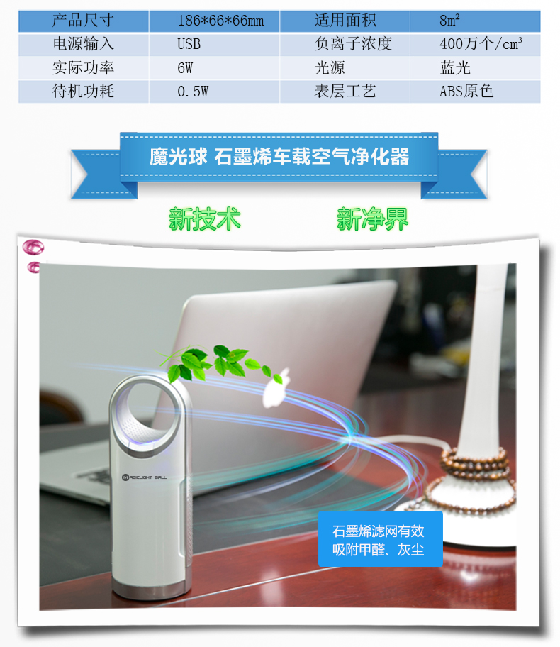商品名称:魔光球车载空气净化器 USB迷你家居清新空气净化器 员工高档福利
