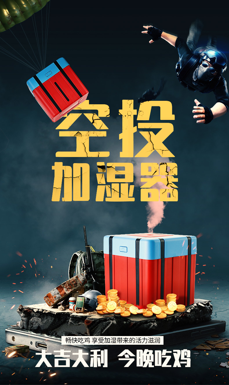 空投箱加湿器 迷你usb超声波家用办公室桌面 吃鸡空投包加湿器 男生礼品定制 游戏比赛奖品