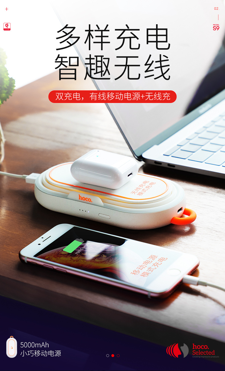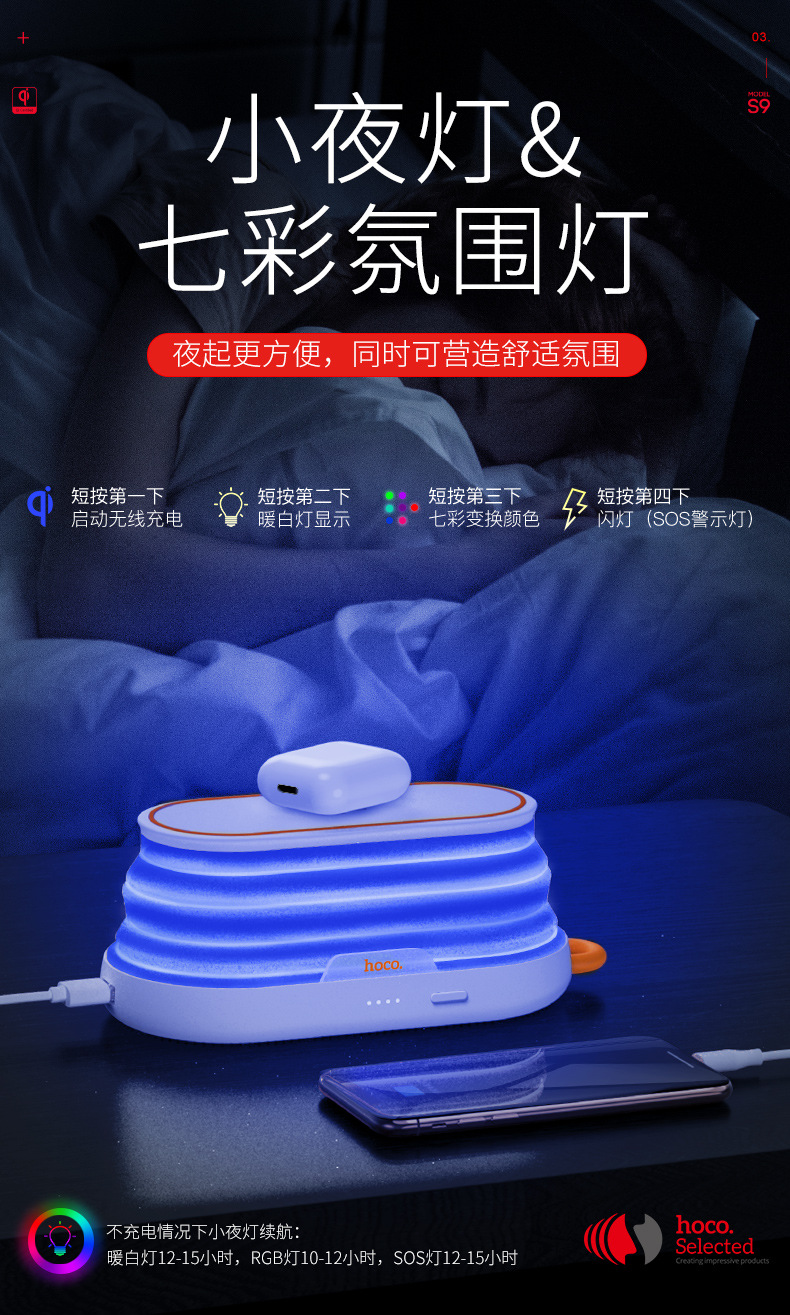 hoco premium product 四合一多功能移动电源 便携式小夜灯 无线充电宝手机支架 创意数码礼品定制 科技小礼品